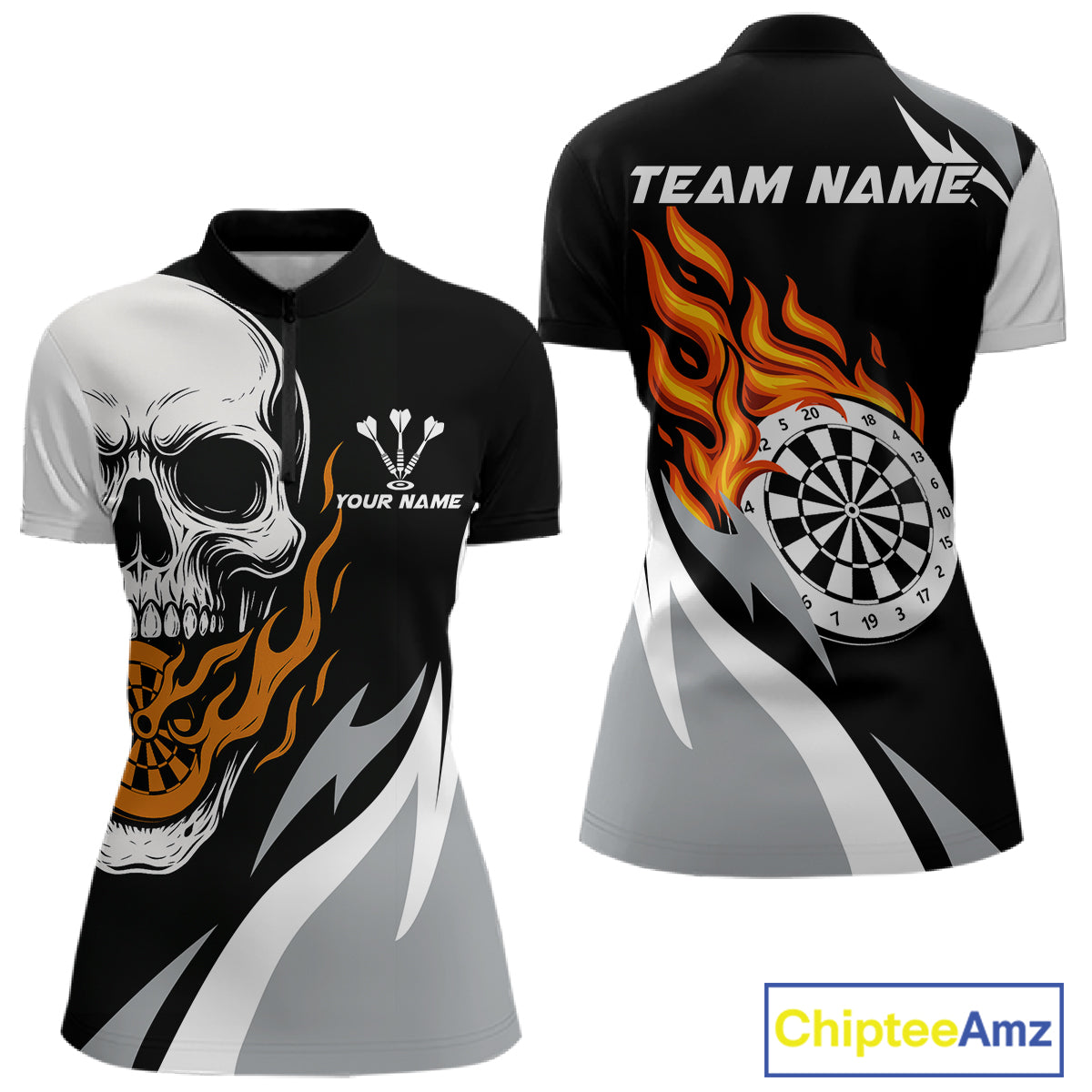Our specially designed dart polo and quarter-zip shirts are perfect for female dart players who want to stand out. With a flattering fit and eye-catching designs, these shirts highlight your confidence and love for darts. Whether you’re competing at a high level or enjoying casual games with friends, we can create the ideal shirt for you and your team. Add your personal touch to make it uniquely yours.