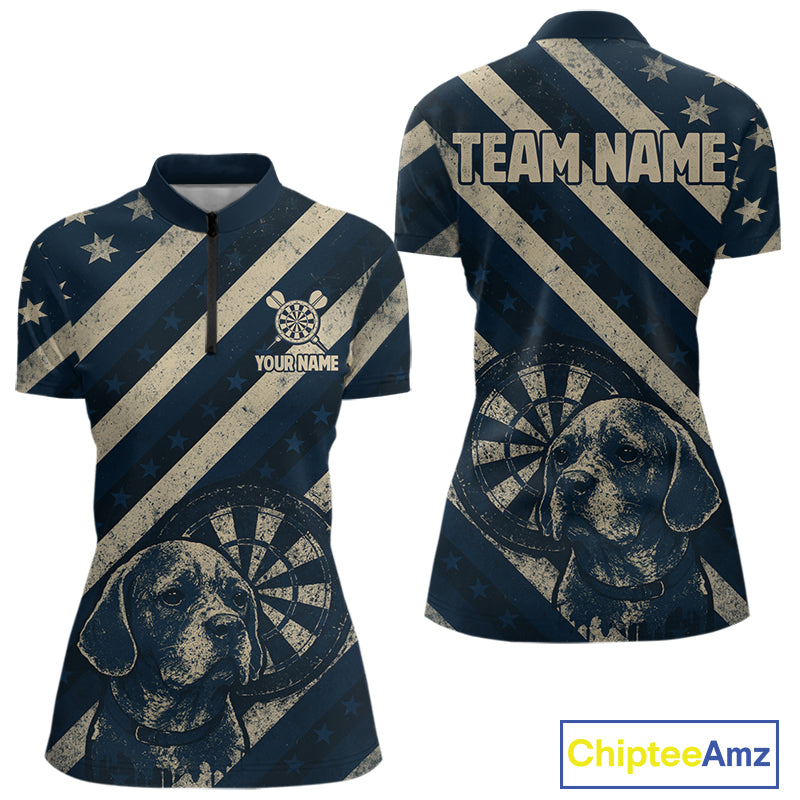 Custom Blue Grunge Dog Dartboard Darts Jersey For Women Outfit Patriotic Dart Team Jersey  NYN1276