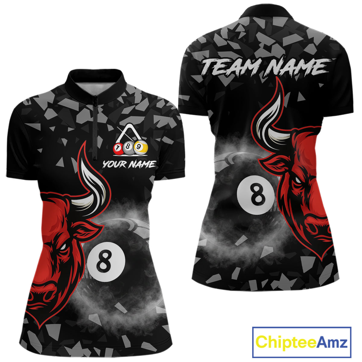 Grey Smokes Ball 8 Pool Billiard Shirts For Women Custom Funny Bull Billiard Team Jerseys NYN2297