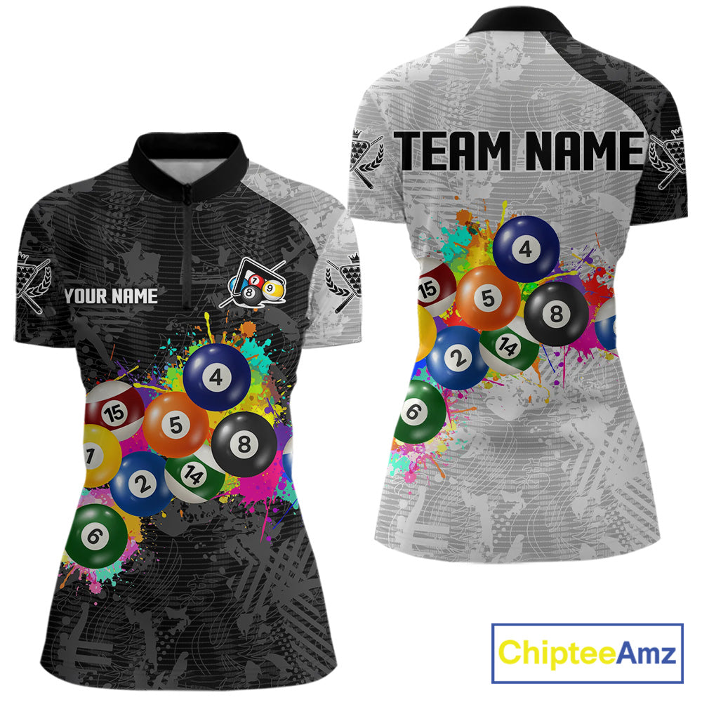 Personalized Colorful Splatter Billiard Balls Shirt For Women Pool Ball 8 Billiard Jersey NYN2311
