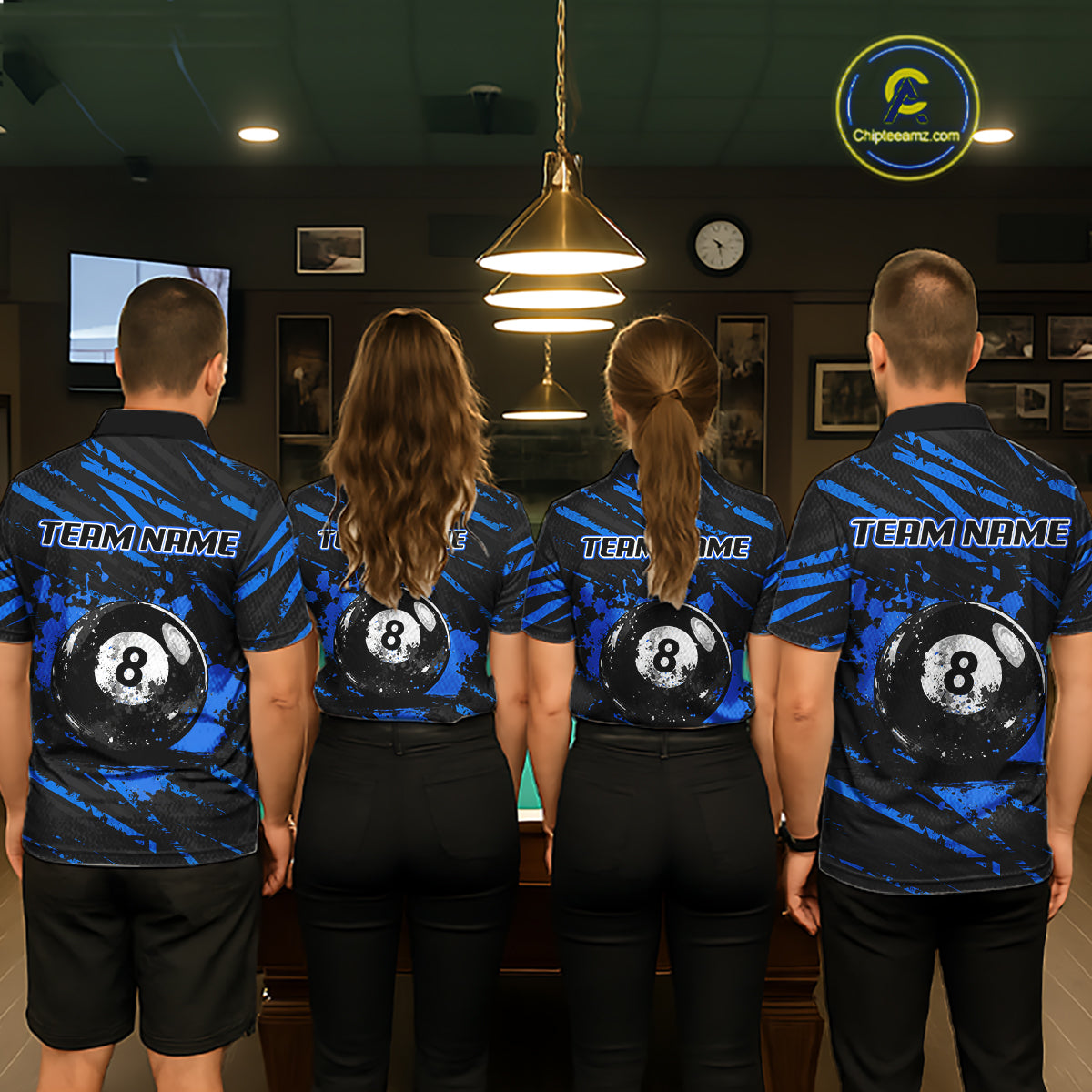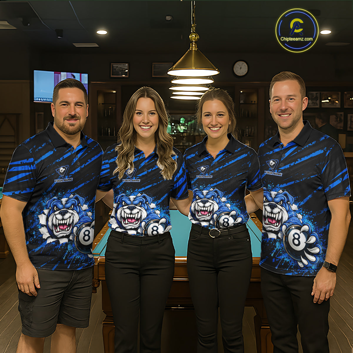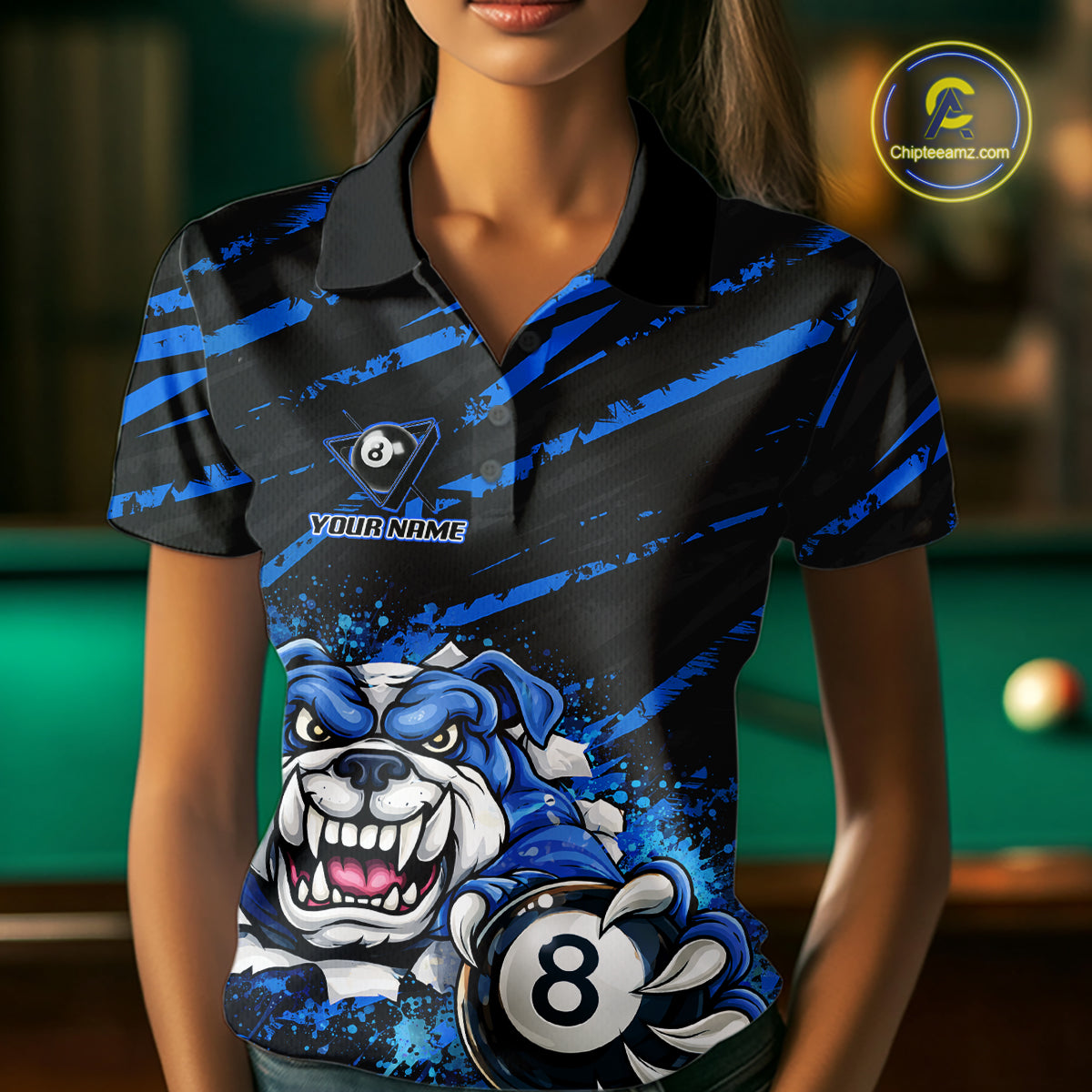 Blue Splatter Ball 8 Billiard Jerseys For Women Custom Funny Bulldog Billiard Team Jersey NYN2319