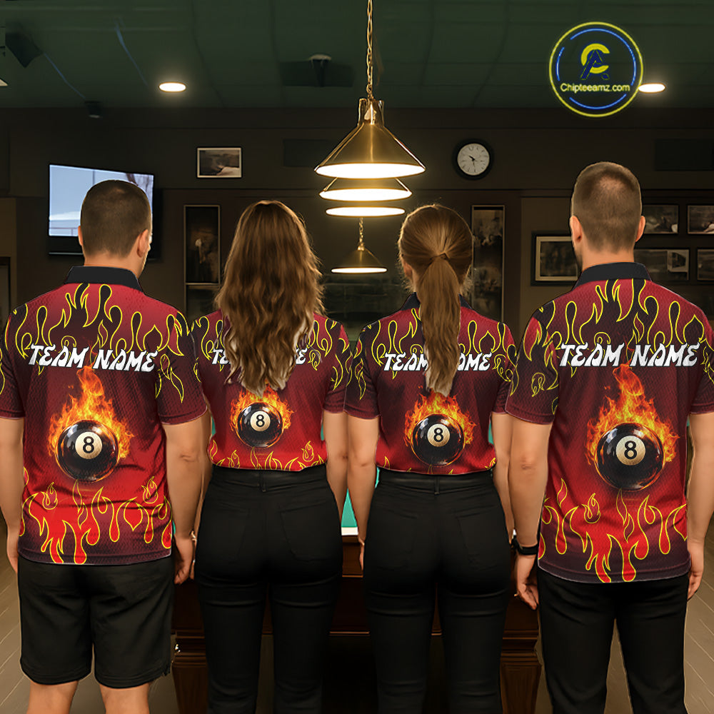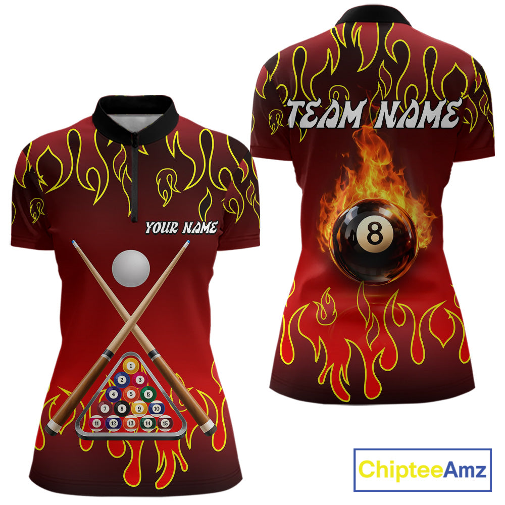 Custom Fire Flame 8 Ball Women's Billiard Shirts Personalized Billiard Attire Gifts | Red NYN2321