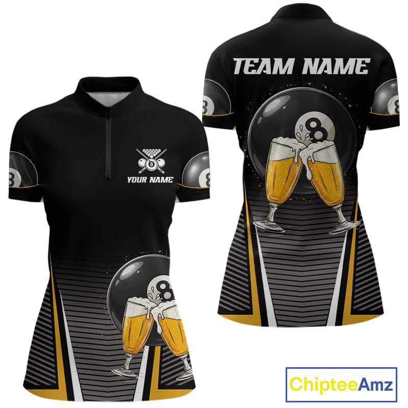 Custom Funny Cheer Beer & 8 Ball Women's Billiard Shirts Personalized Billiard Apparel Gifts NYN2326