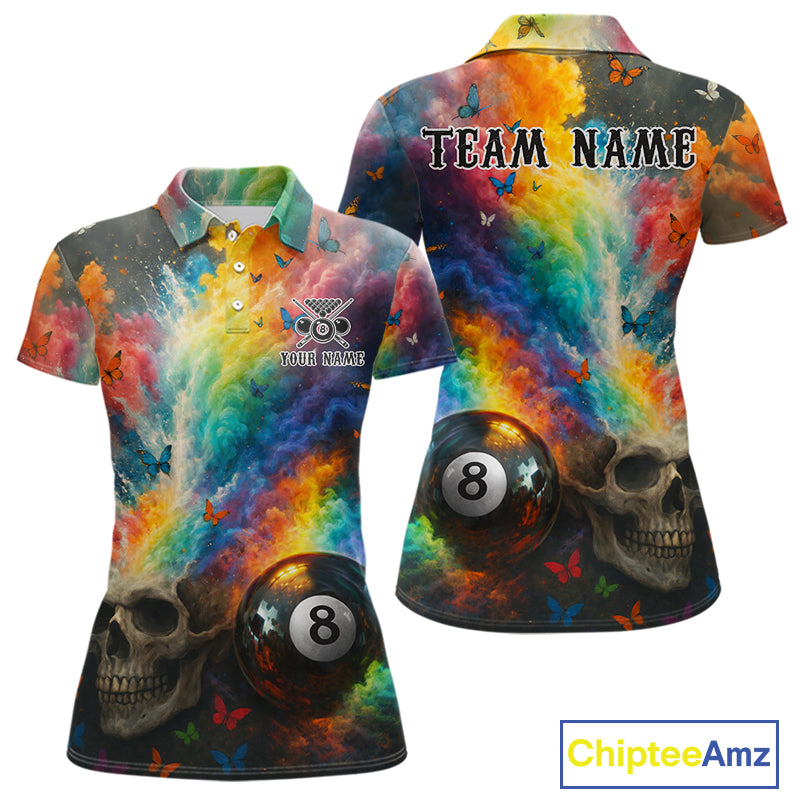 Custom Colorful Smoke 8 Ball Women's Billiard Shirts Personalized Skull Billiard Team Attire NYN2331
