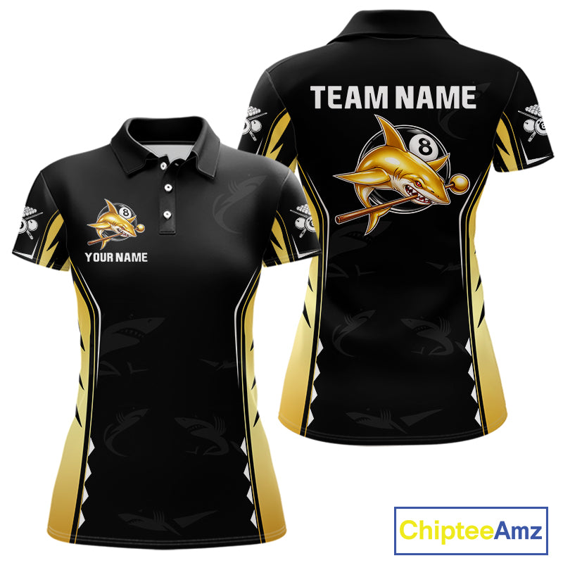 Funny Gold Shark Ball 8 & Cue Billiard Shirts For Women Personalized Billiard Attire Gifts NYN2341