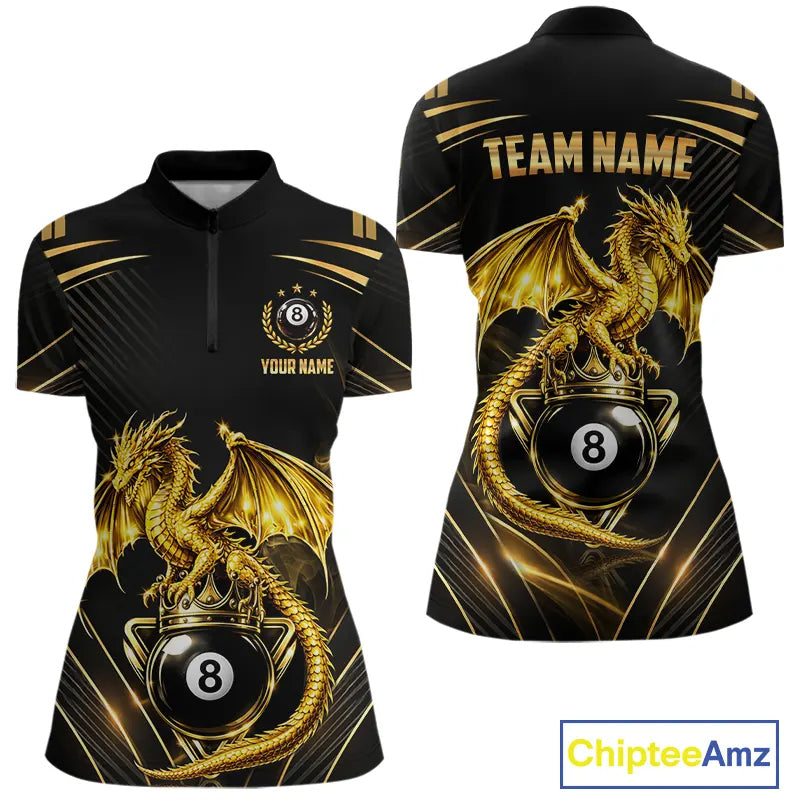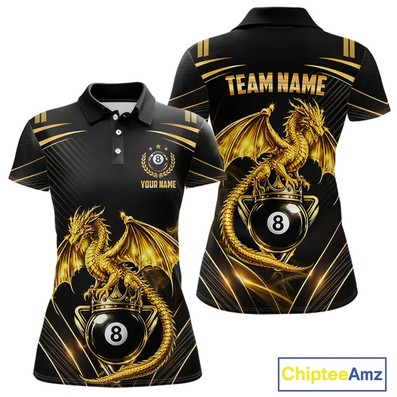 Black & Gold 8 Ball Crown Women's Billiard Team Shirt Custom Dragon Pool Billiard Jerseys NYN2348