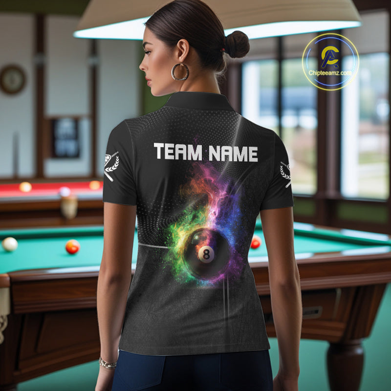 Personalized Colorful Smoke 8 Ball Women Billiard Polo & 1/4 Zip Shirt Pool Billiard Apparel NYN2370