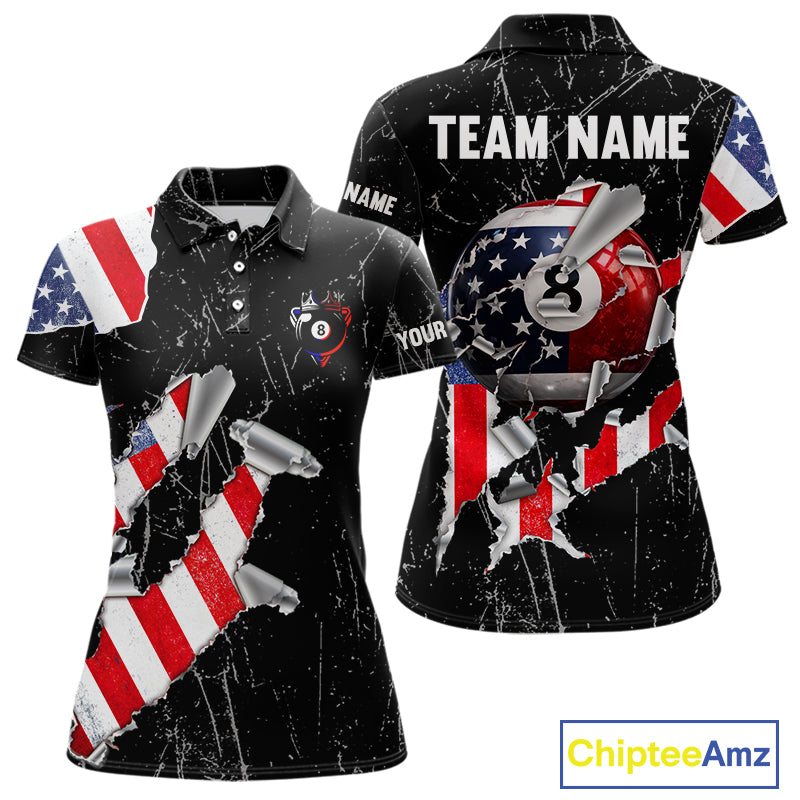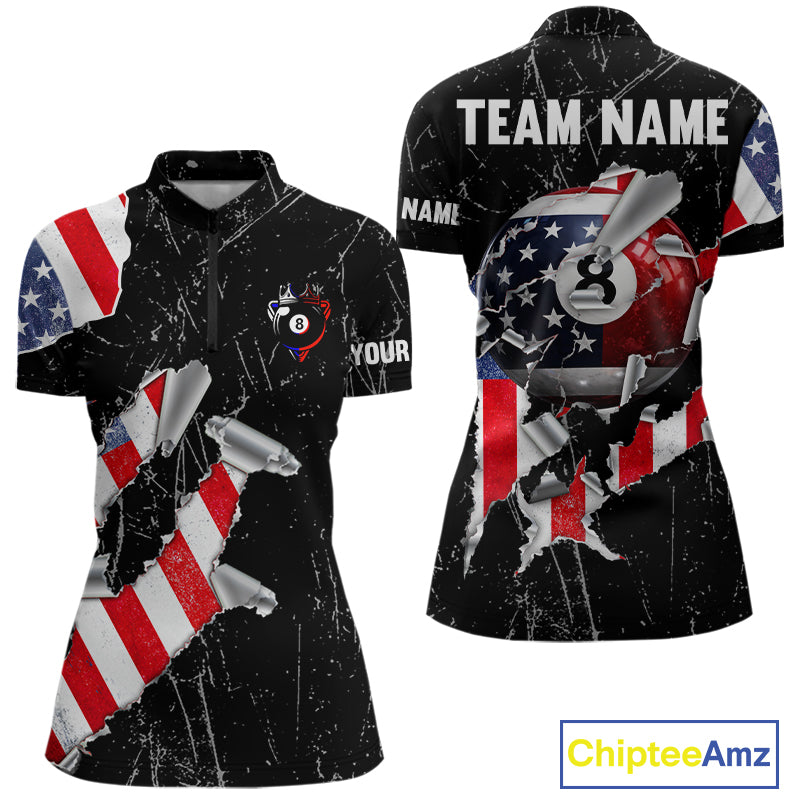 Torn US Flag Grunge Pool 8 Ball Women Billiard Team Shirt Custom Polo & 1/4-Zip Billiard Attire NYN2379