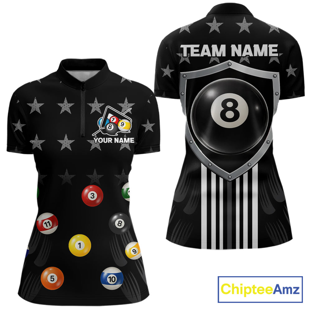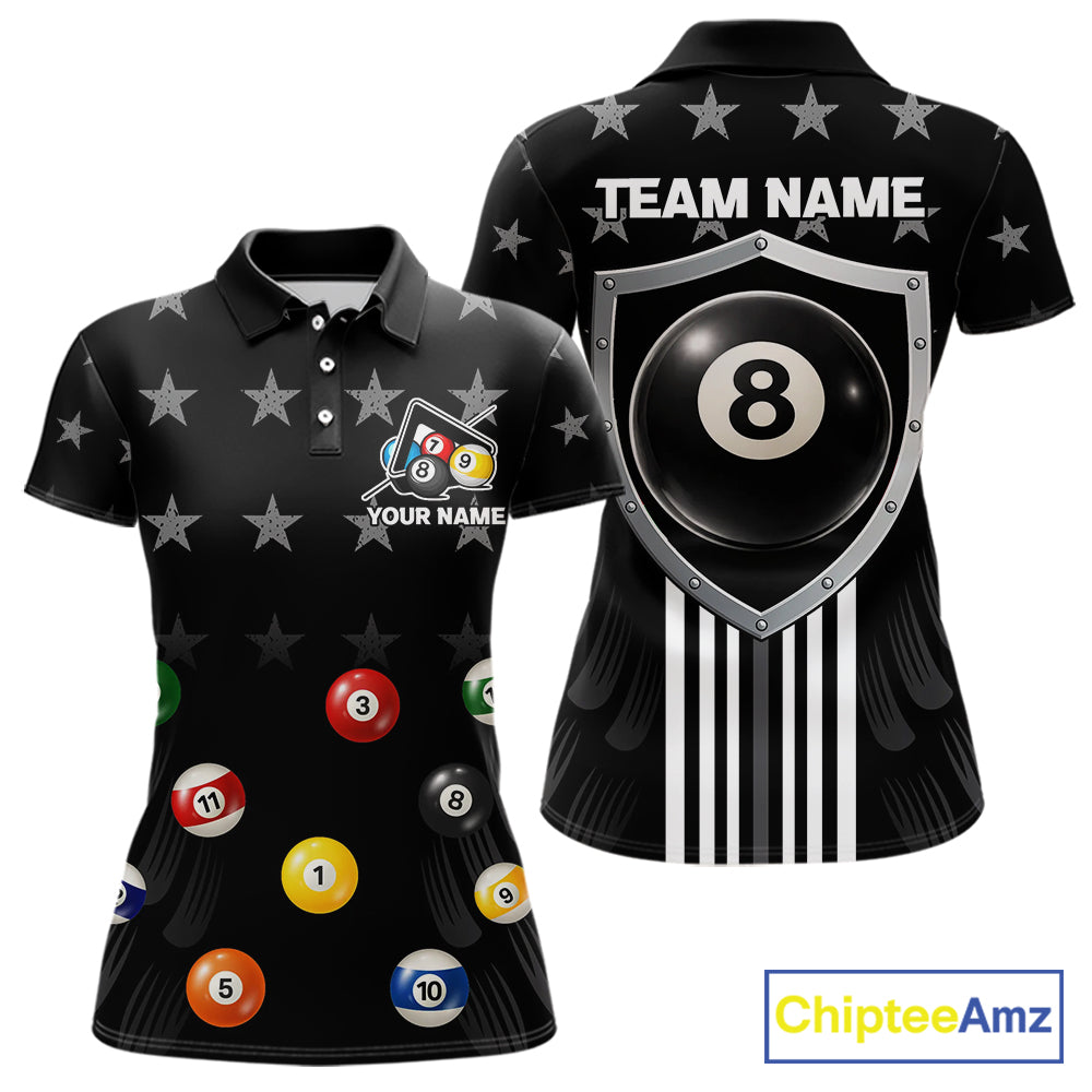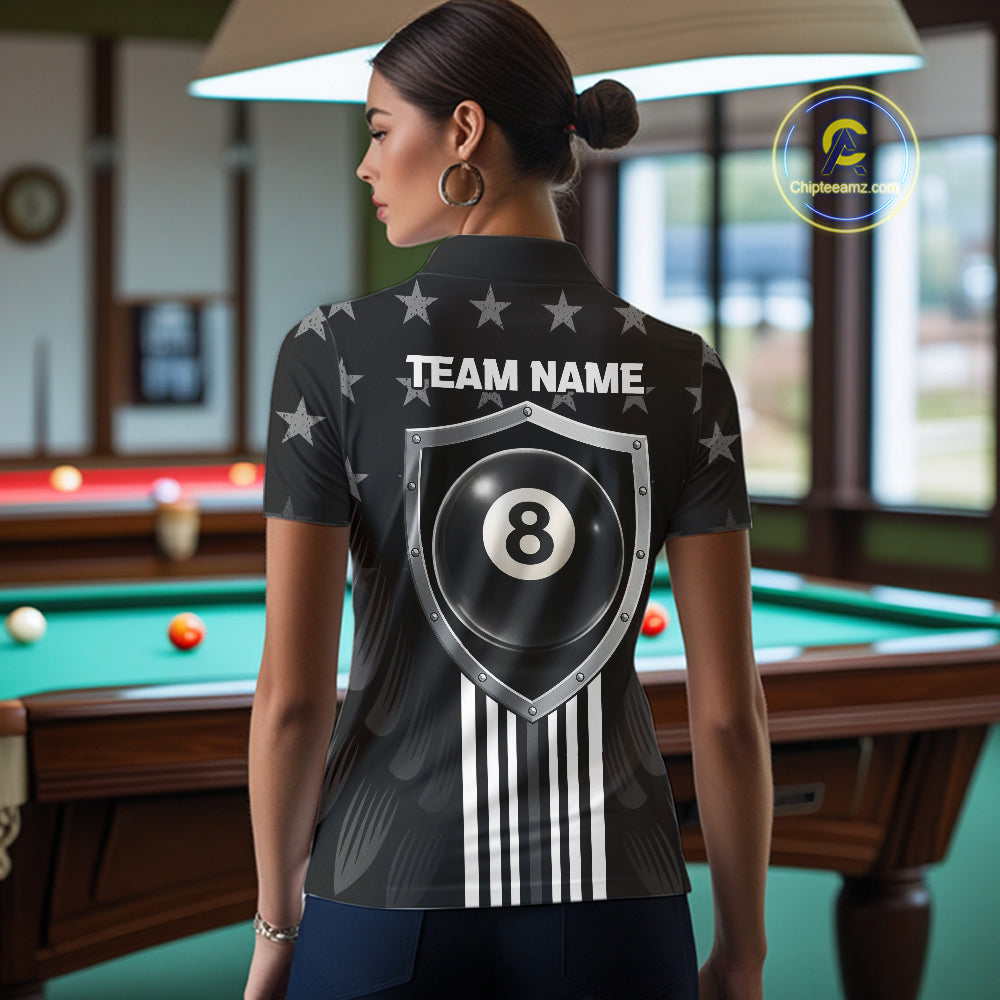 Black Stars 8 Ball Pool Women Billiard Team Shirt Personalized Polo & 1/4-Zip Billiard Gifts NYN2381
