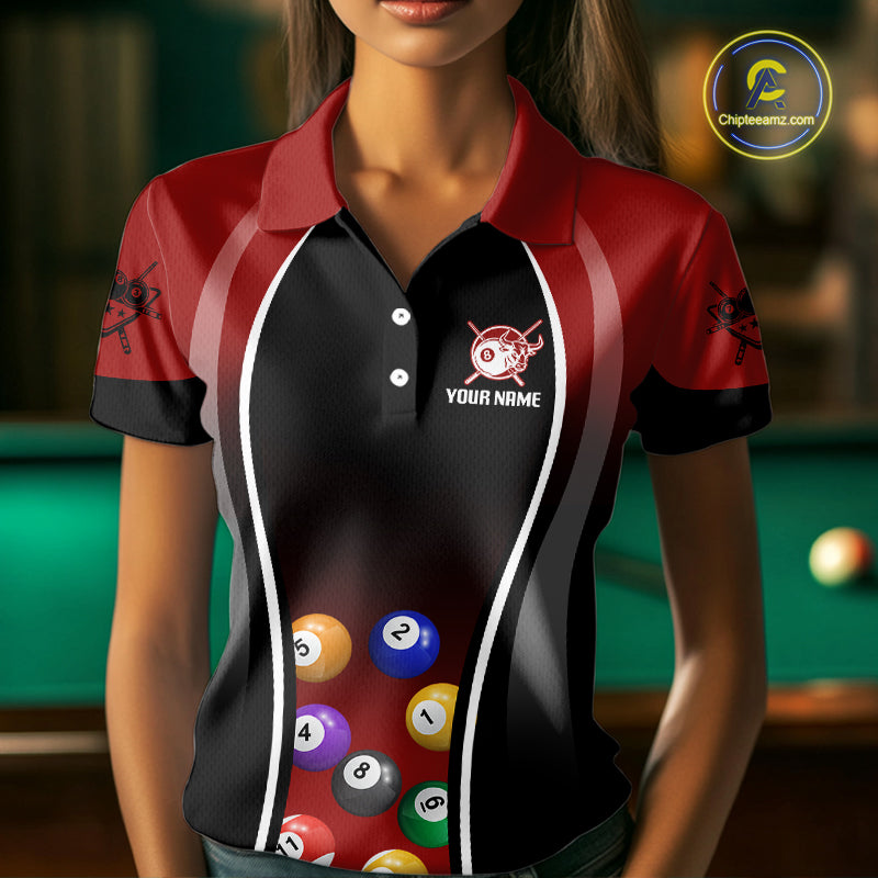 Red Funny Bull Pool Balls Women Billiard Polo & 1/4-Zip Apparel Custom Billiard Shirt Designs NYN2408