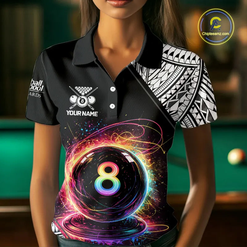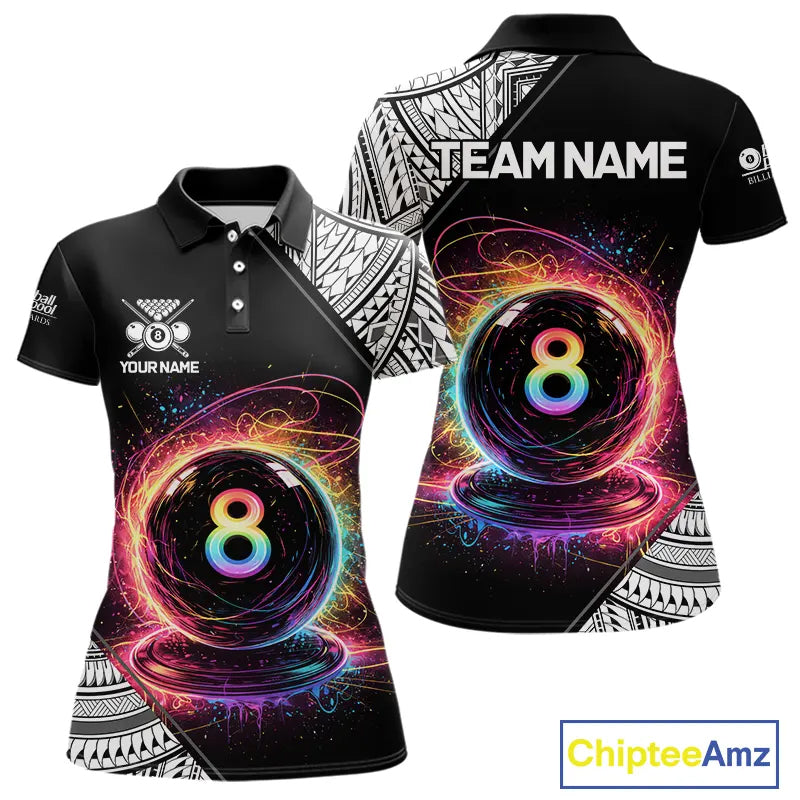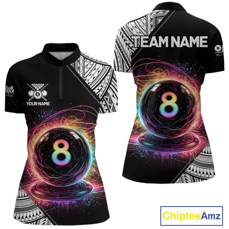 Rainbow 8 Ball Pool Polo & 1/4-Zip Shirt For Women Personalized Tribal 8 Ball Billiard Gifts NYN2425