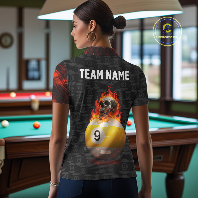 Fire Skull 9 Ball Pool Billiard Team Shirt For Women Custom Red Flames Billiard Ball & Cue Gifts NYN2437