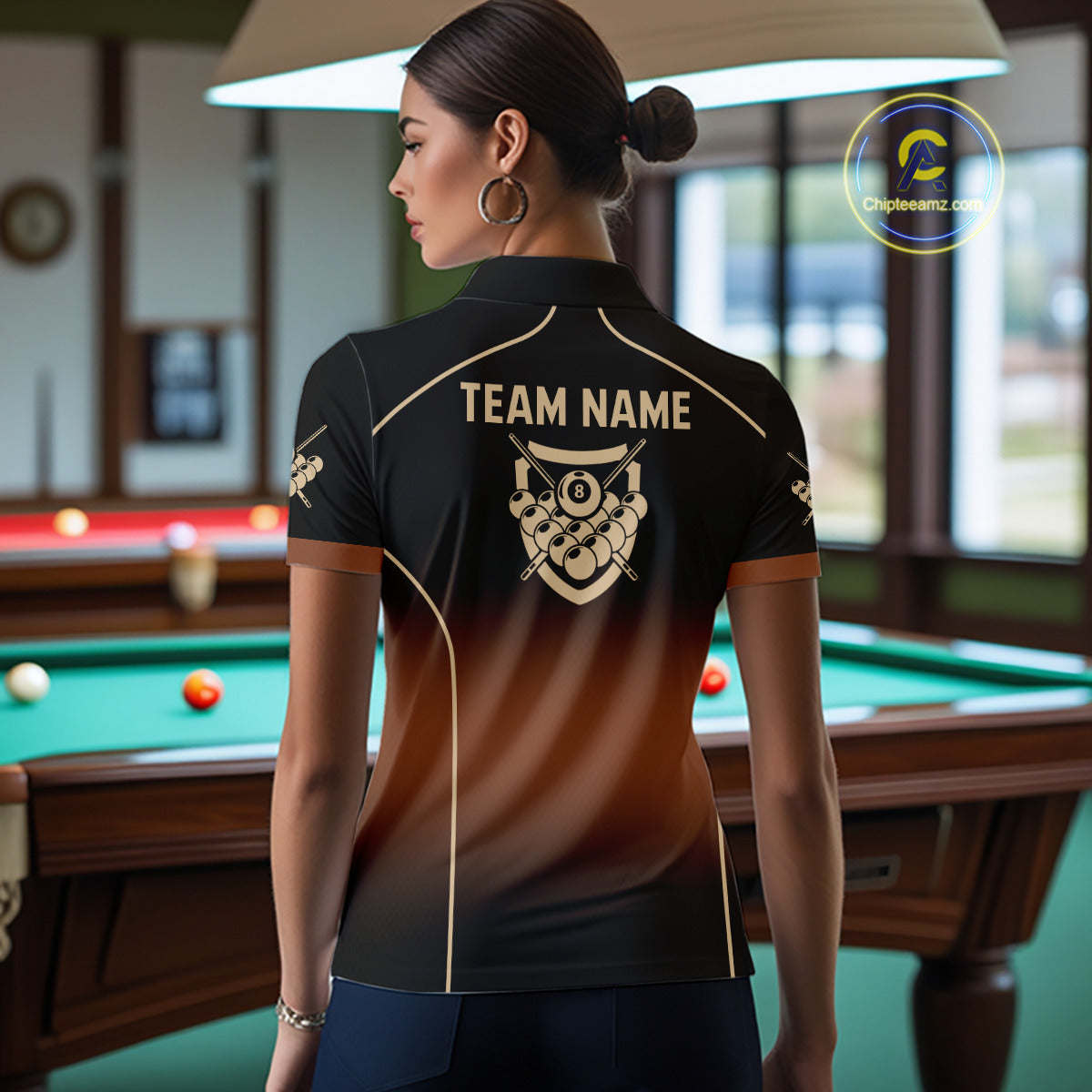 Black And Brown 8 Ball Pool Women Billiard Polo & 1/4-Zip Shirt Custom Billiard Balls Jerseys NYN2442