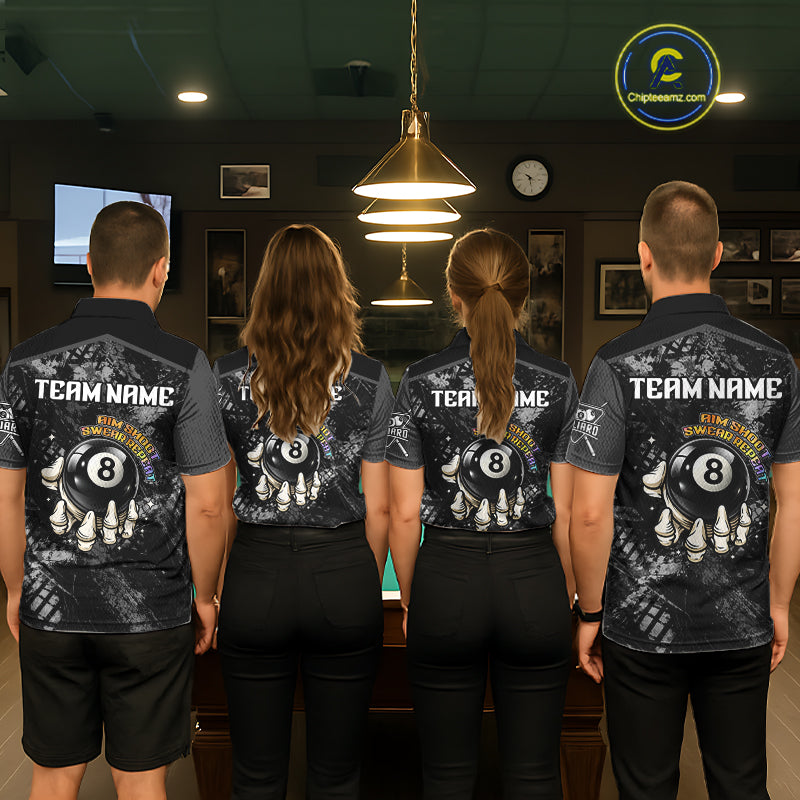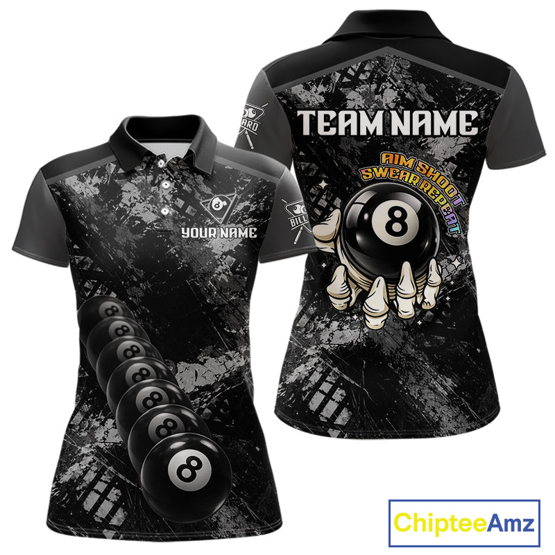 Aim Shoot Swear Repeat Holding 8 Ball Pool Women Billiard Team Shirt Custom Ball Billiards Apparel NYN2467