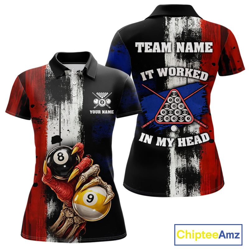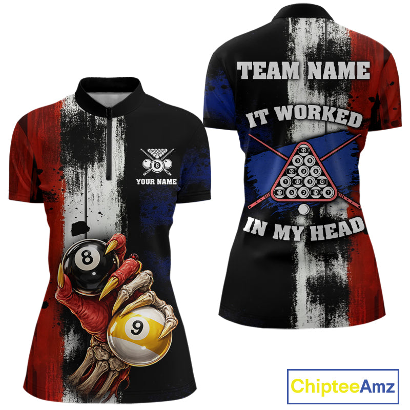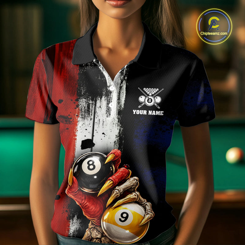 Skull Hoding 9 Ball & 8 Ball Pool Women Billiard Team Shirt Custom Blue & Red Billiards Ball Apparel NYN2468