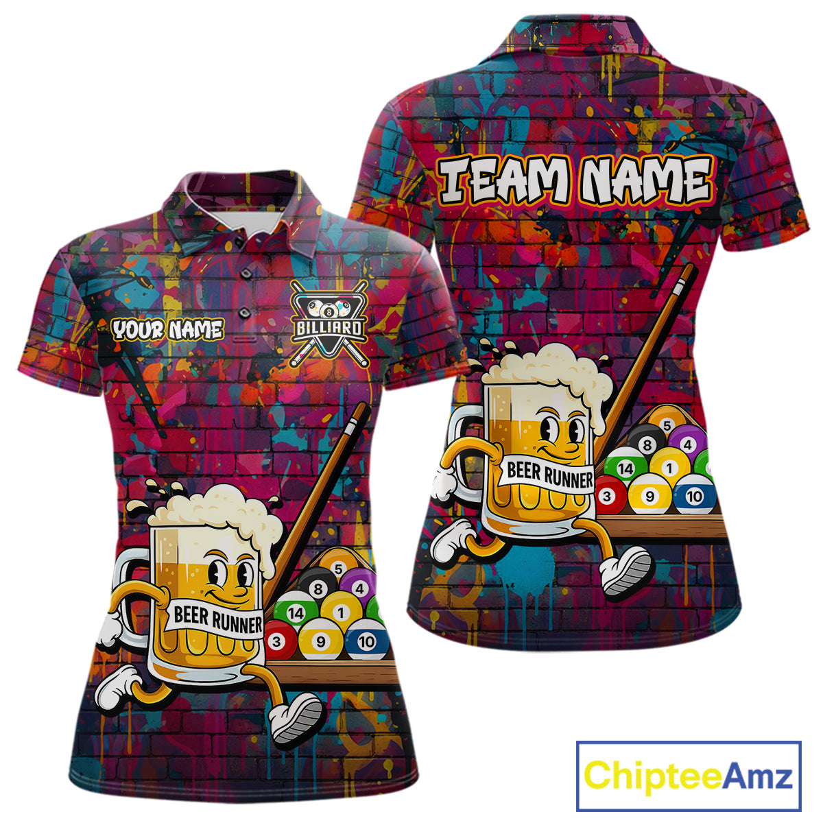 Funny Beer Play Pool 8 Ball Women's Billiard Team Shirt Custom Colorful Splatter Billiard Attire NYN2476