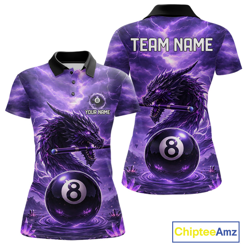 Dragon Thunder Purple Cue & Pool 8 Ball Women Billiard Shirt Custom Billiard Polo & 1/4-Zip Attire NYN2496