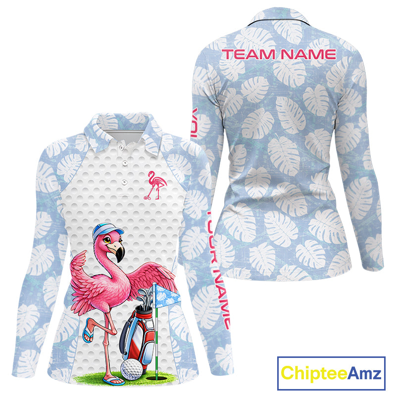 Custom Blue Tropical Monstera Funny Flamingo Matching Womens Golf Polo Shirts Team Golf Clothes NYN2881