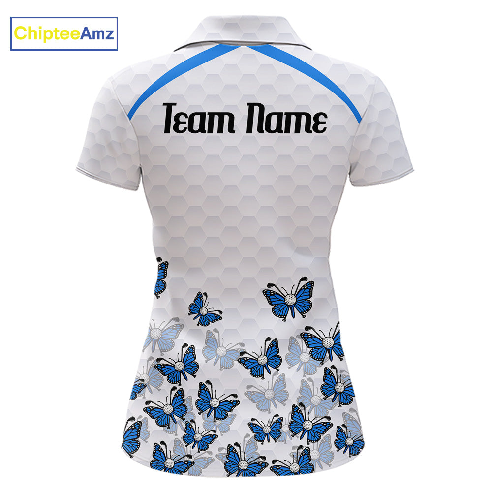 Blue Pattern Butterfly Womens Golf Polo Shirt Custom Name White Ball Golf Clothes Shirts NYN2909