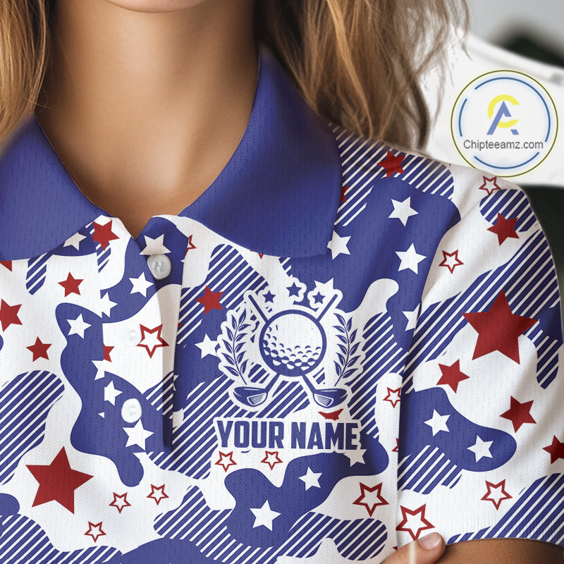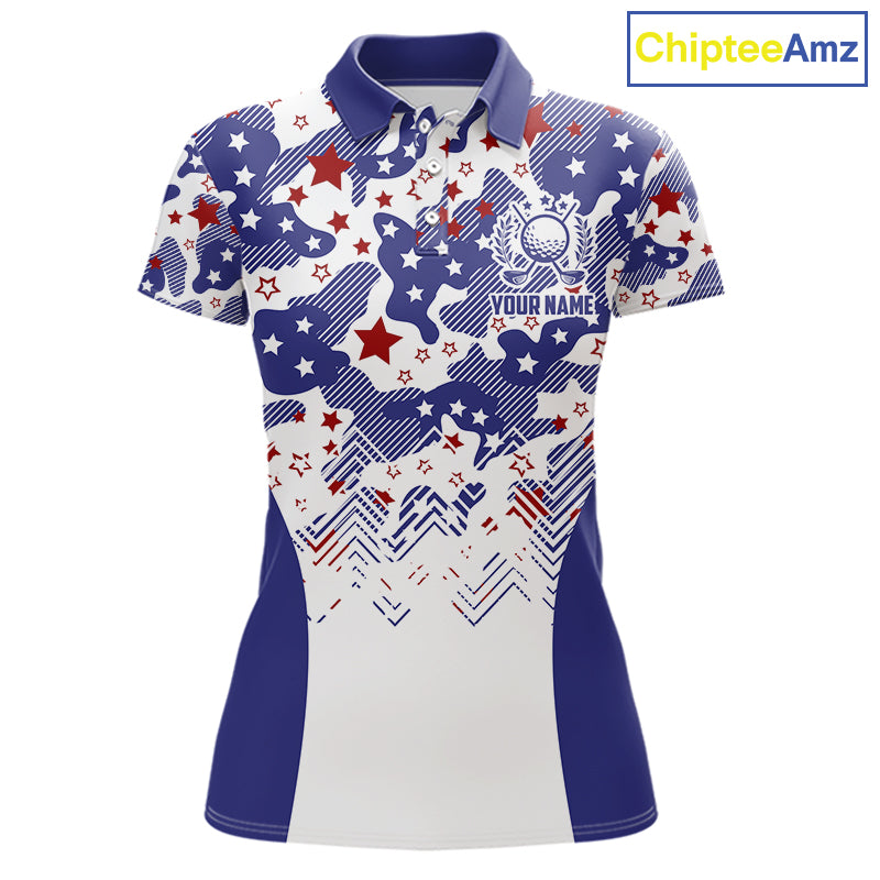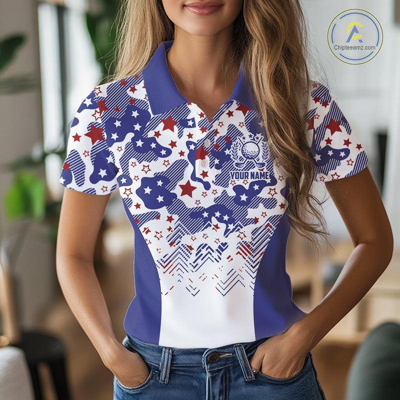 Womens Golf Polo Shirt Camouflage US Flag Custom Patriotic Golf Team Shirts For Women, Golf Gifts NYN2916