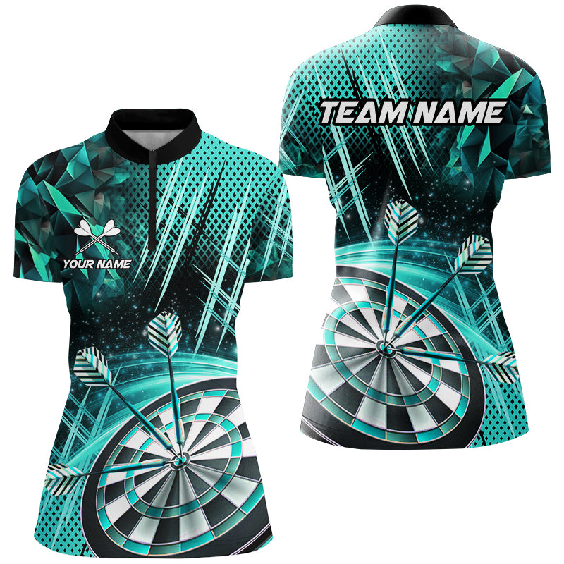 Personalized 3D Glitter Women Darts Shirts Custom Team Dart League Shirts Dart Jerseys |Turquoise TDM2581