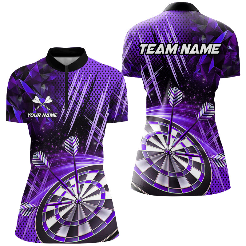 Personalized 3D Glitter Women Darts Shirts Custom Team Dart League Shirts Dart Jerseys |Purple TDM2583