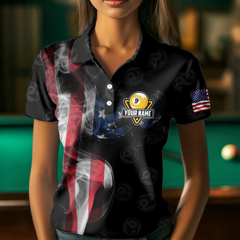 Personalized Vintage Smoke US Flag Billiard Shirts For Women, 9 Ball Pool Patriotic Billiard Jerseys TDM3633