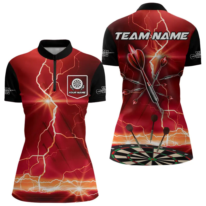 Customized Lightning Dart Shirt With Pocket Option For Women, Red Dart Jersey TDM3674