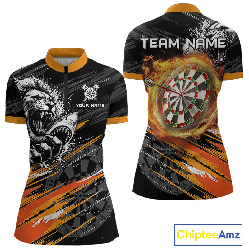 Orange And Black Grunge Lion And Shark Dart Shirts Custom Women's Dart Jersey Polo & Quarter Zip TDM3847