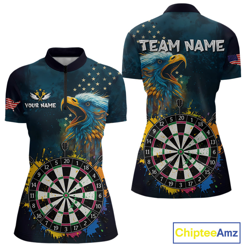 Funny Colorful Dartboard Eagle Darts Shirt For Women Custom Navy Blue US Flag Darts Team Jersey TDM4292