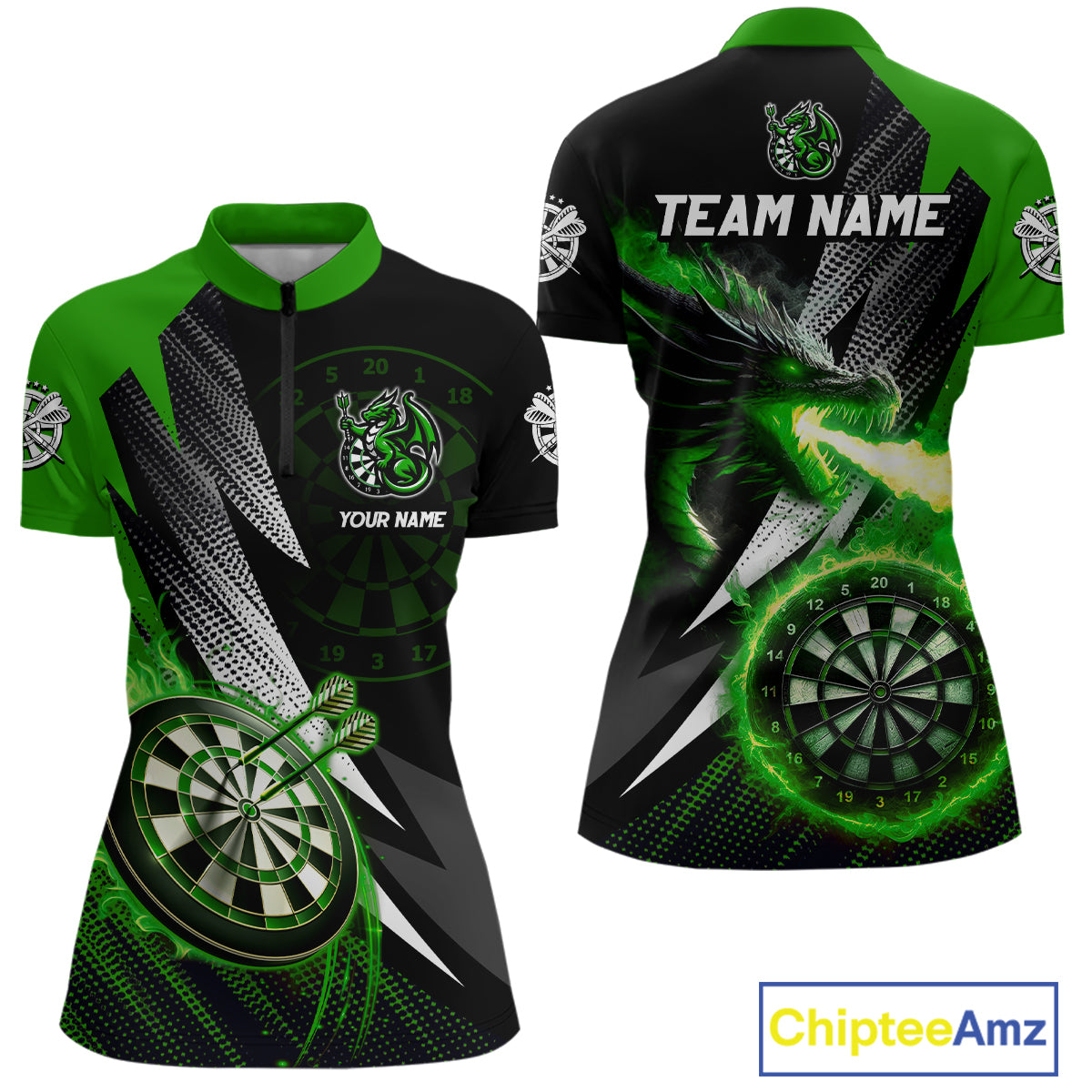 Personalized Striking Black And Green Flaming Dragon Dart Shirts For Women Custom Dart Team Jerseys TDM4299