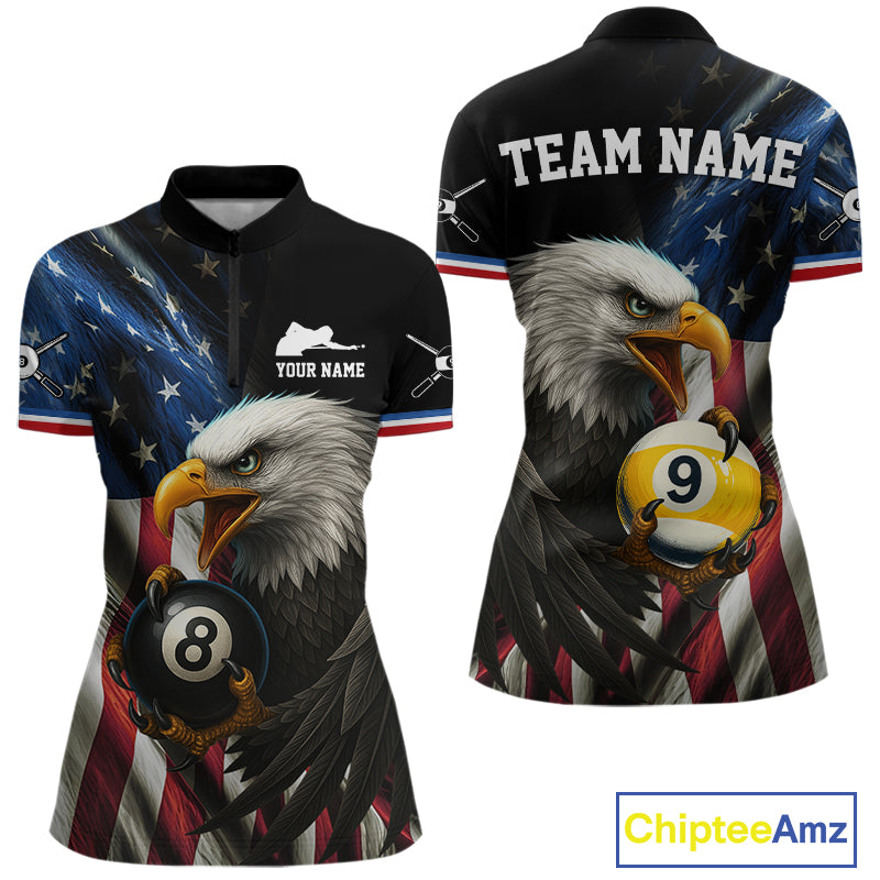 American Flag Eagle 8 Ball & 9 Ball Billiard Shirt For Women Custom Patriotic Billiard Jersey TDM4477
