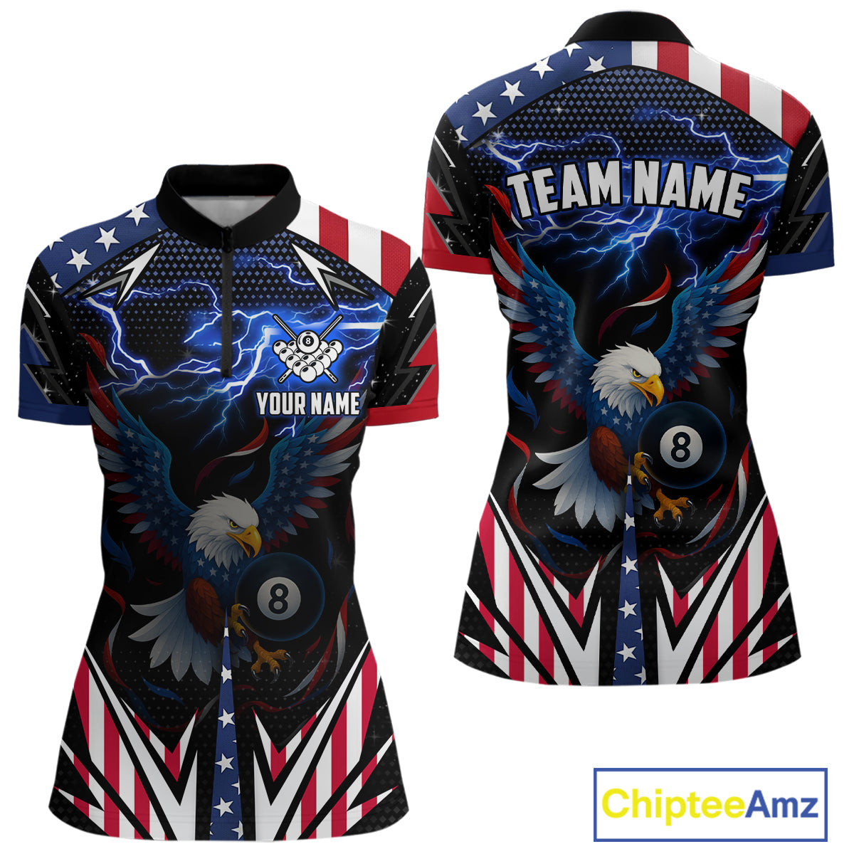American Flag Eagle 8 Ball Pool Lightning Billiard Shirt For Women Custom Patriotic Billiard Jersey TDM4704