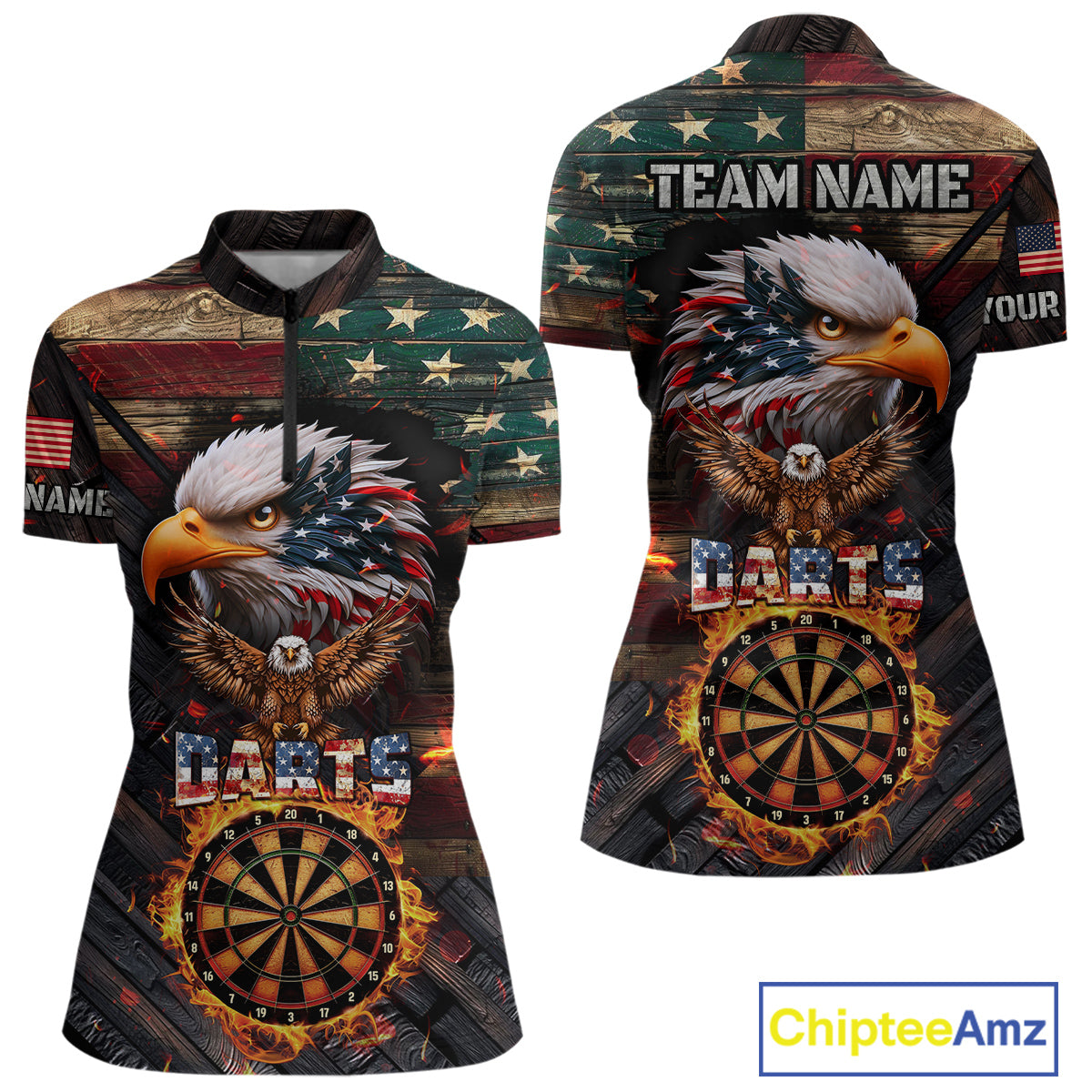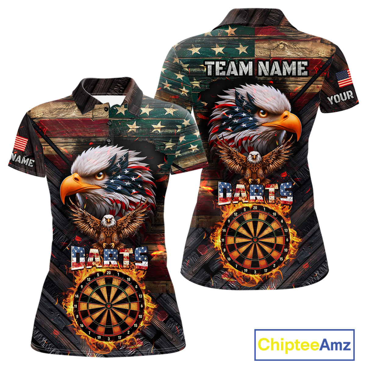 American Flag 3D Dartboard Fire Flame Custom Eagle Darts Shirt For Women, Patriotic Dart Team Jersey TDM4717