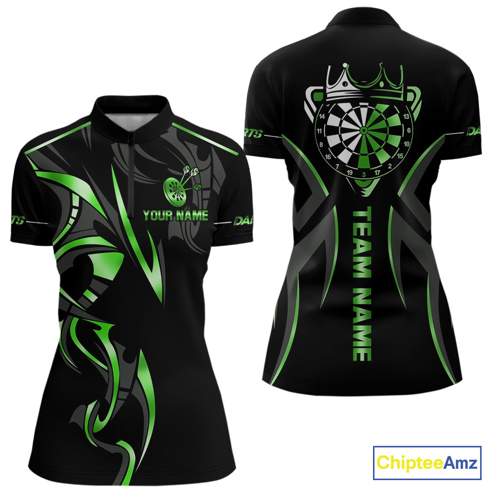 Black And Green Dartboard Crown Dart Shirts For Women Custom Dart Jersey Team Polo & Quarter Zip TDM4791