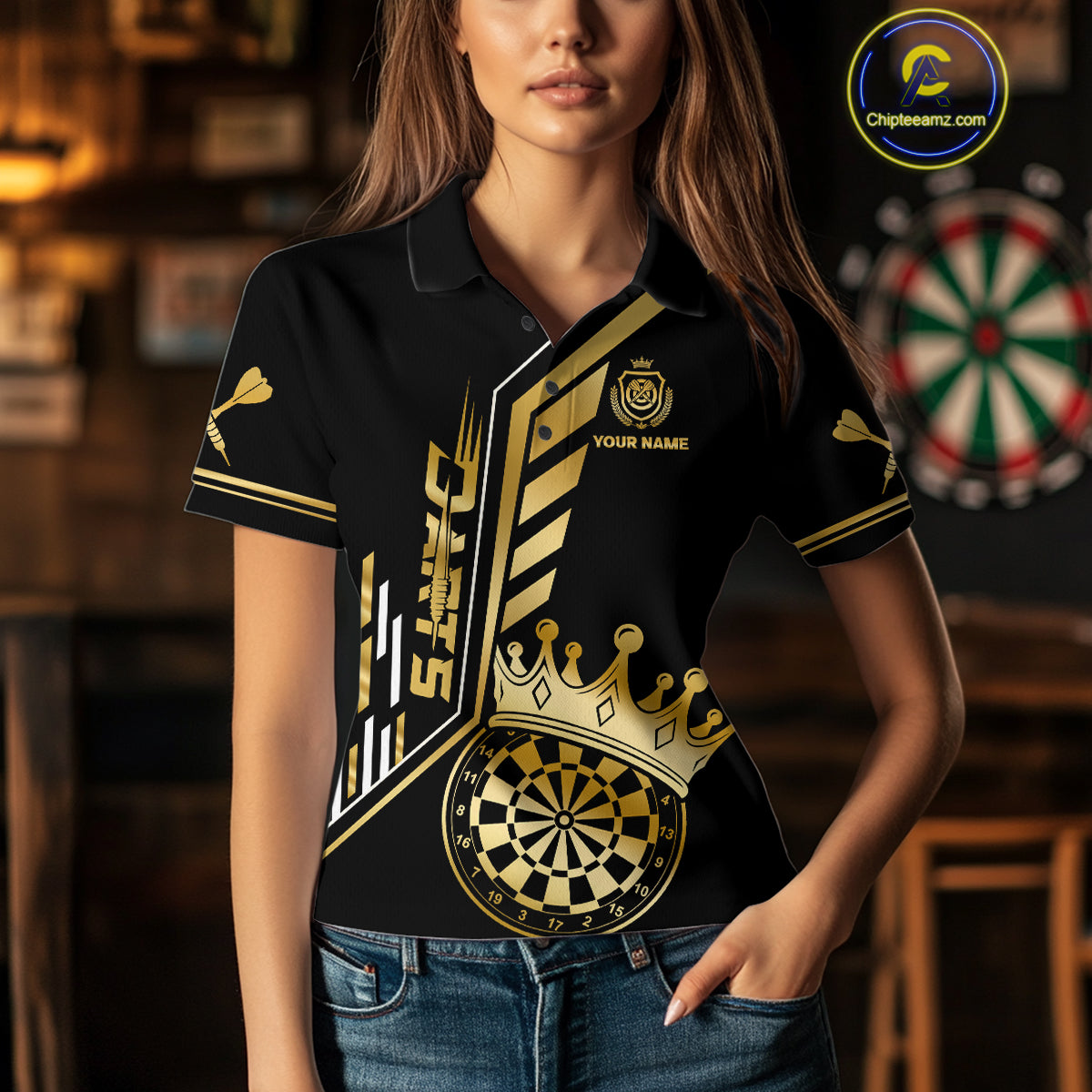Black And Golden Funny Crown Darts Shirt Polo & 1/4 Zip For Women Custom Darts League Team Jersey TDM4821