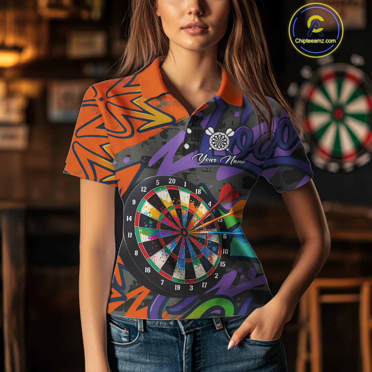 Funny Colorful Dartboard Graffiti Style Darts Shirt For Women Custom Darts Jersey, Darts Gifts TDM4901