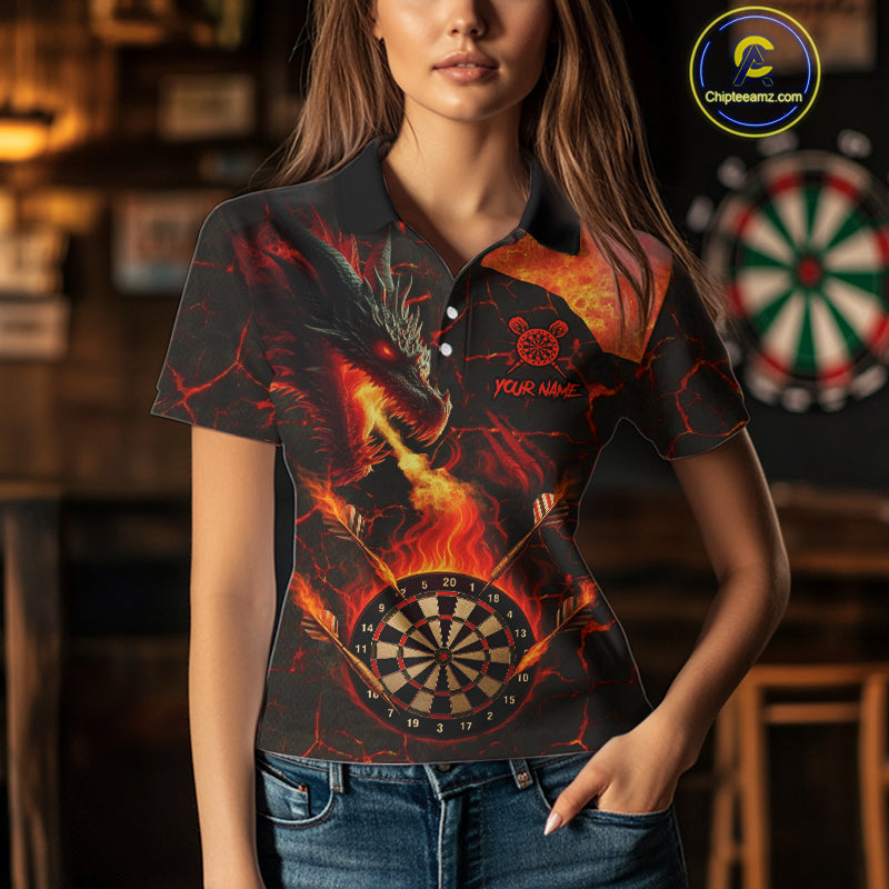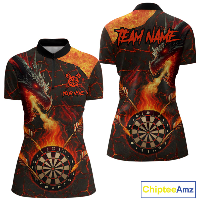 Personalized Fire Flame Dragon Darts Shirt For Women Custom Darts League Jersey Team Polo & 1/4 Zip TDM4902