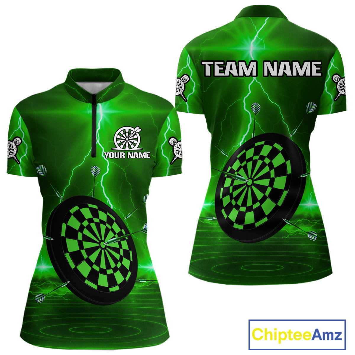 Personalized Dartboard Thunder Lightning Green Darts Shirt For Women Custom Glowing Darts Jersey TDM4921