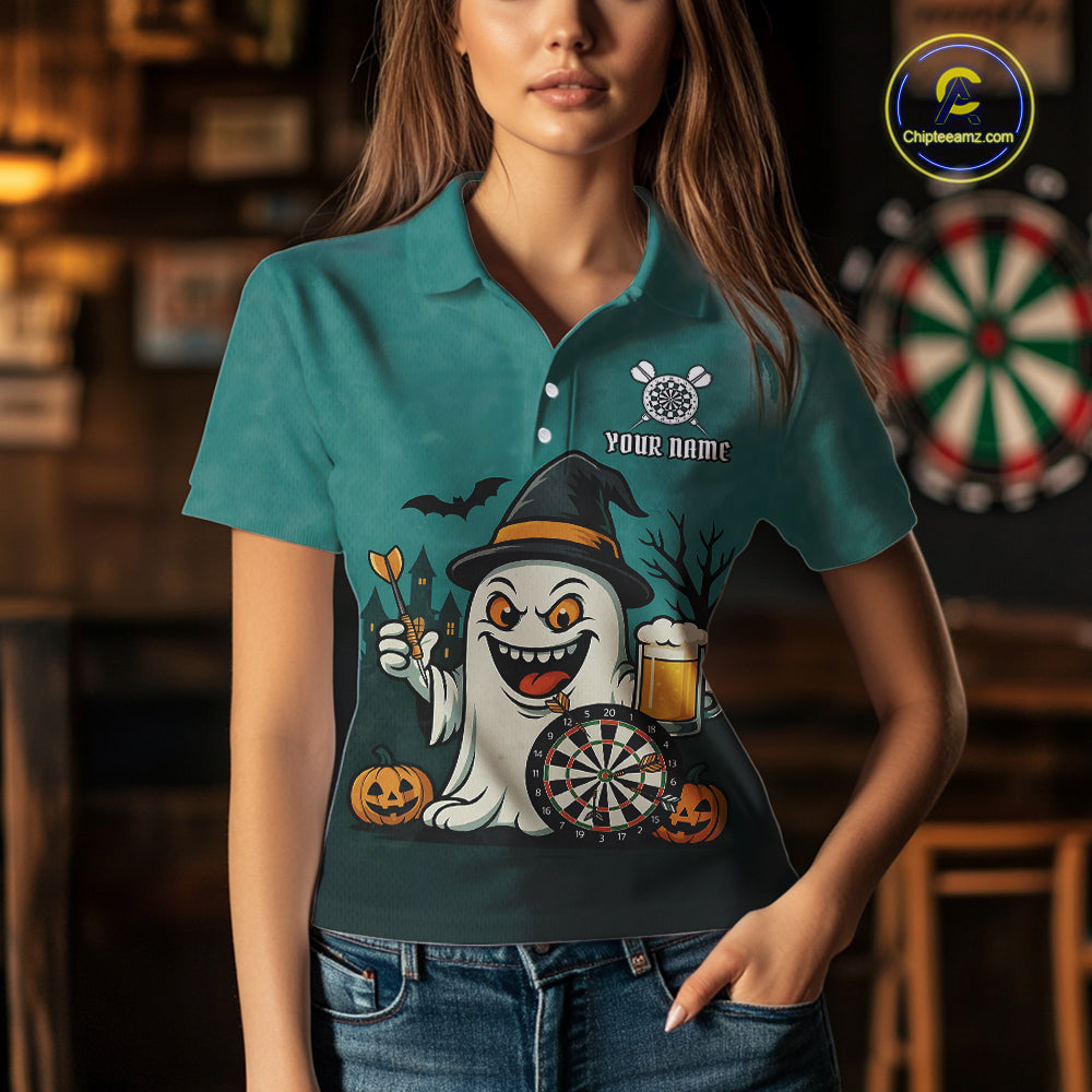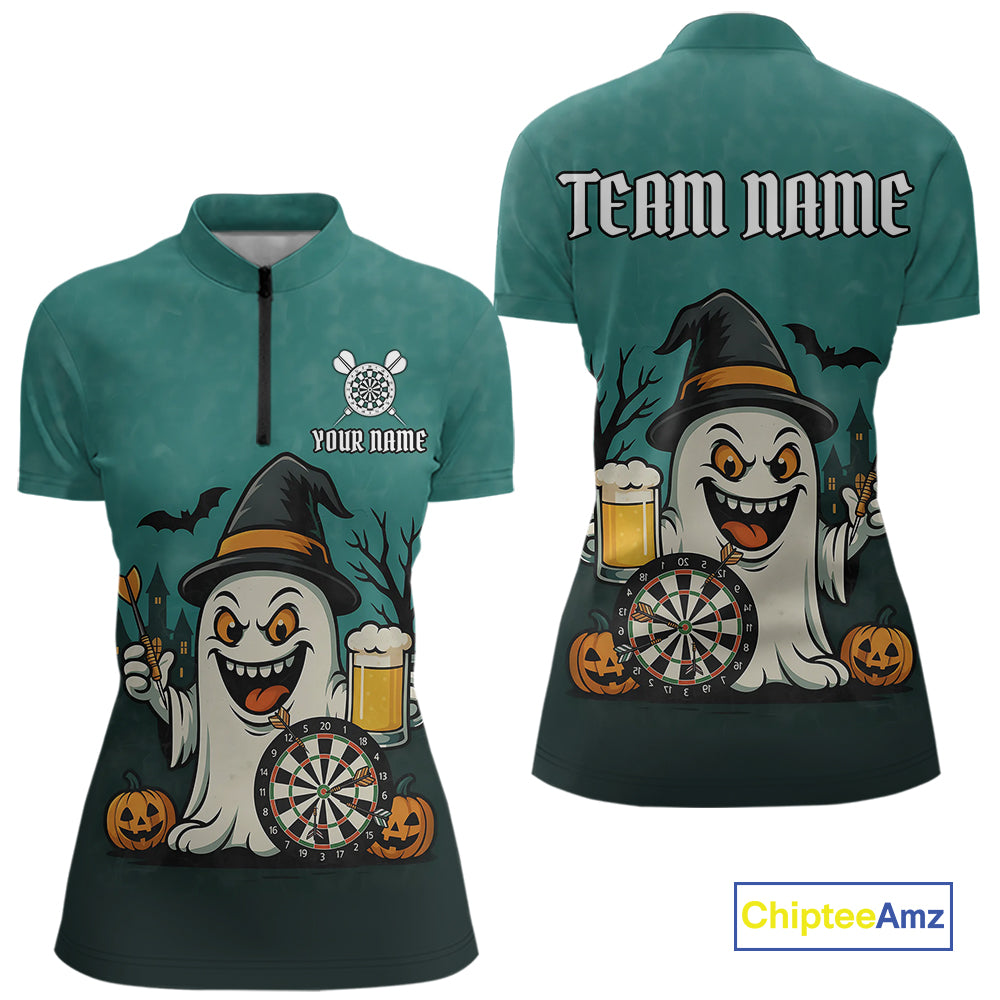 Custom Darts Shirt Halloween Ghostly Beer Polo & 1/4 Zip For Women, Funny Darts Jersey, Darts Gifts TDM4946