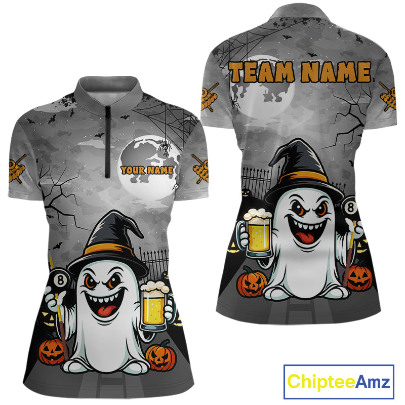Funny Ghostly Beer Halloween Billiard Shirt For Women Custom Halloween Gifts For Pool Player TDM4947