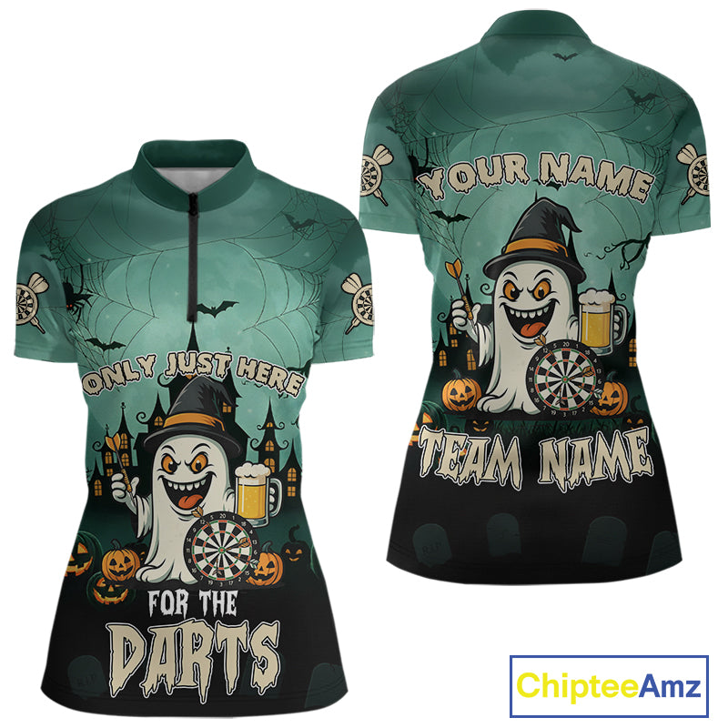 Only Just Here For The Darts Custom Halloween Darts Shirt For Women, Funny Ghostly Darts Team Jersey TDM4951