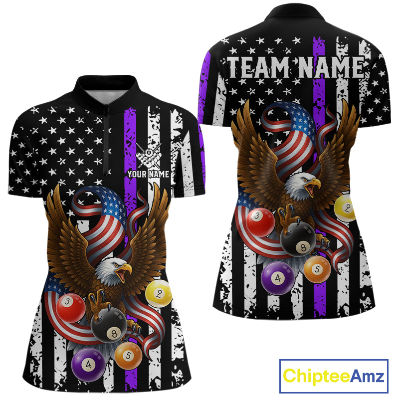 Billiard Eagle American Flag Stripes Pool Jersey For Women Custom Patriotic Billiard Shirt|Purple TDM4984