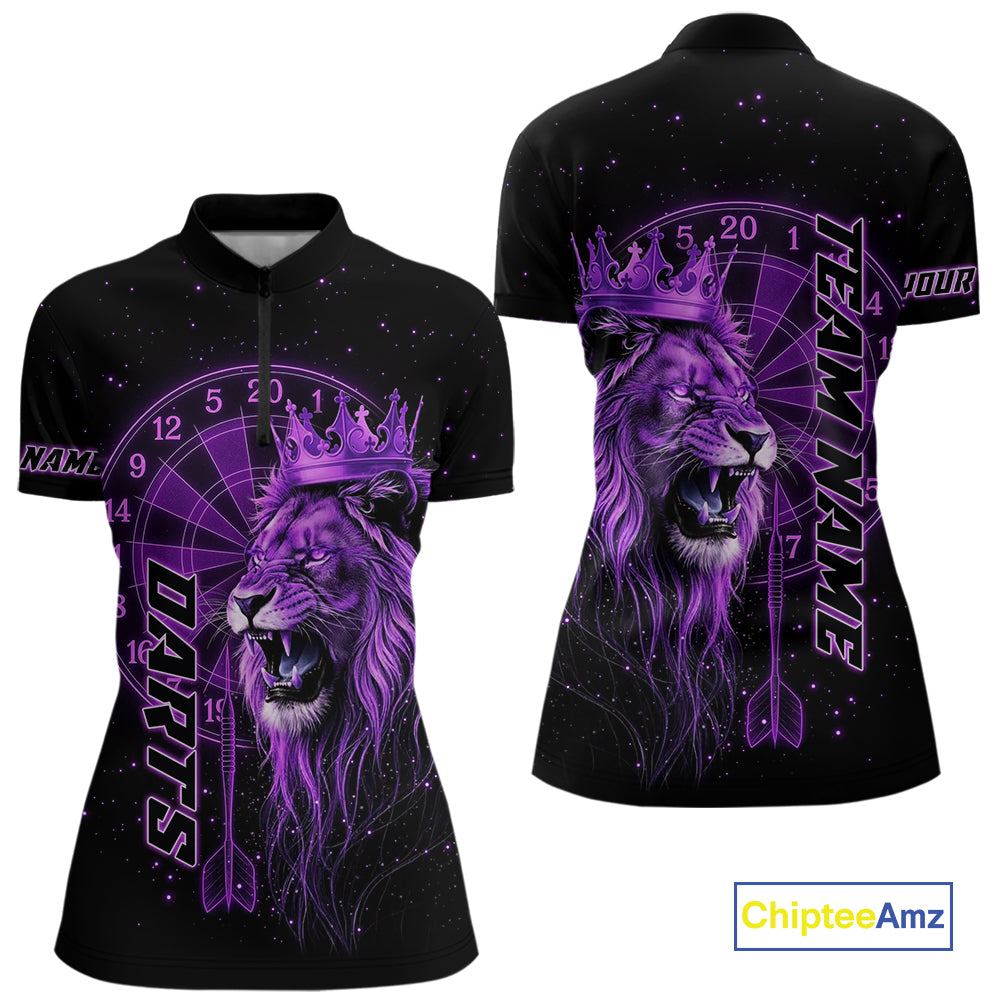 Black And Purple Funny Lion Crown Darts Shirt For Women Custom Darts League Jersey Polo & 1/4 Zip TDM5002