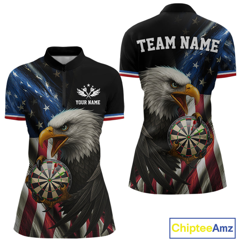 American Flag Eagle Darts Shirt For Women Custom Patriotic Darts Jersey Team Polo & Quarter Zip TDM5012