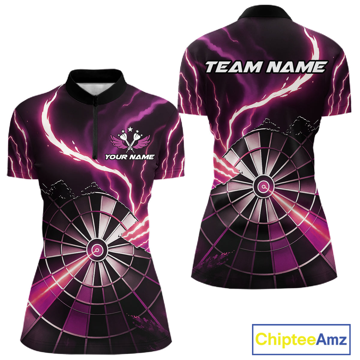 Personalized Pink Lightning Womens Dart Shirts Custom Glowing Darts Team Jersey Polo & 1/4 Zip TDM5160
