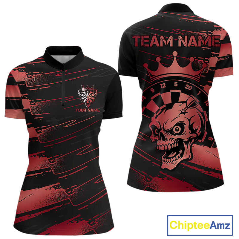 Black And Red Funny Skull Crown Darts Shirt For Women Custom Dart Jerseys Team Polo & Quarter Zip TDM5169