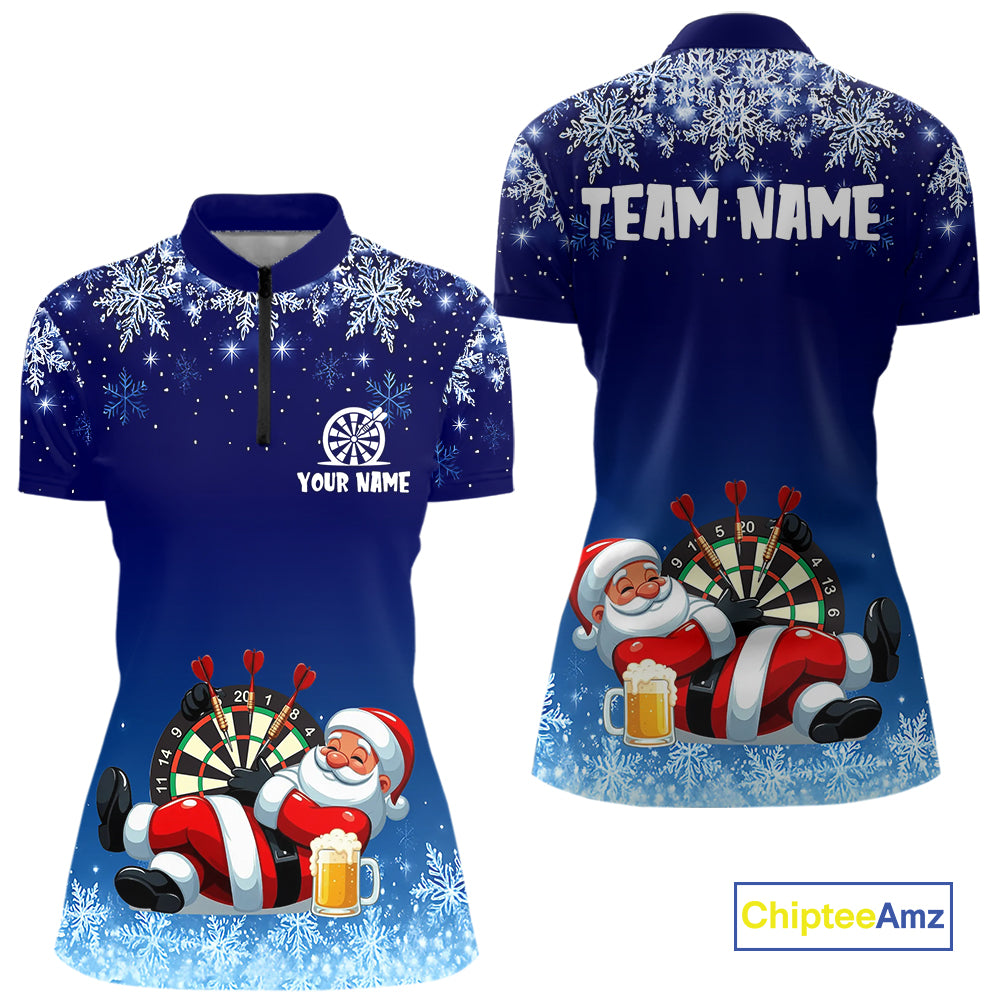 Funny Santa Blue Christmas Darts Shirt For Women Custom Snowflake Xmas Darts Jersey Gifts TDM5190