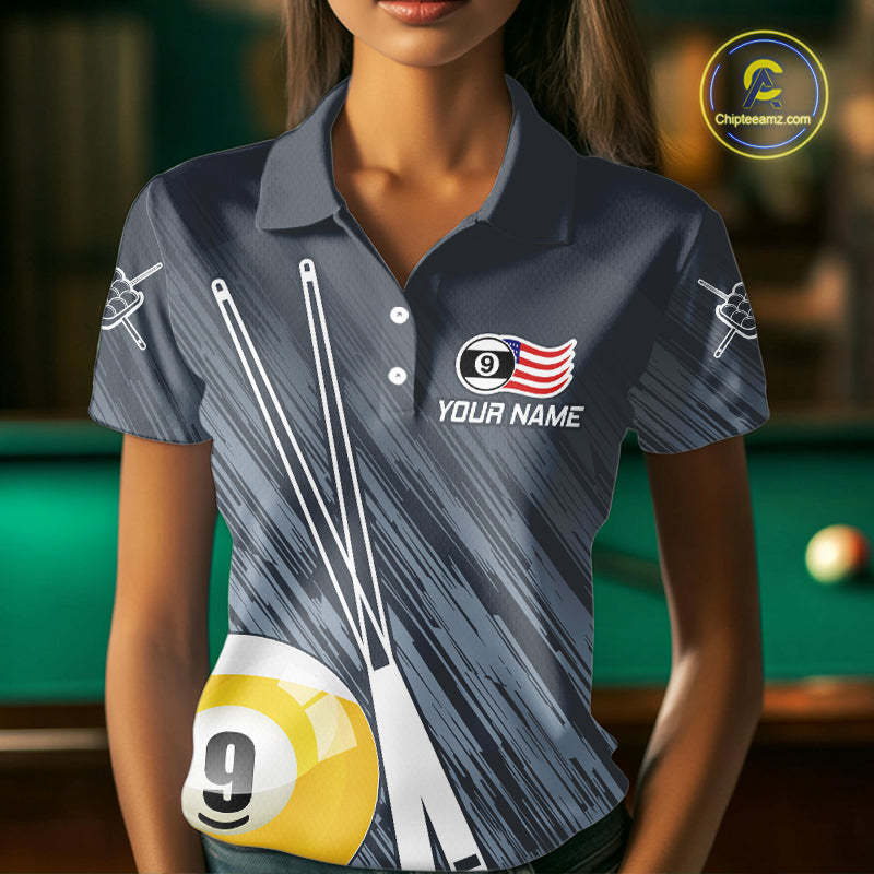 Personalized Billiard US Flag 9 Ball Pool Shirt For Women, Billiard Team Jersey Polo & 1/4 Zip TDM5218