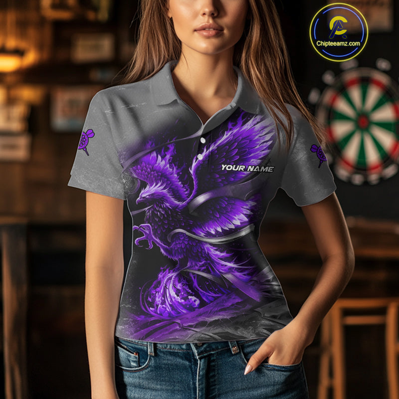Personalized Phoenix Flame Darts Shirt For Women Custom Darts Team Jersey Polo & 1/4 Zip |Purple TDM5248